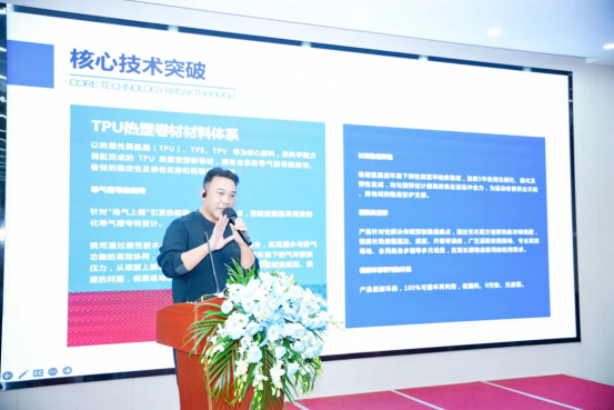 广东力健体育设施有限公司总经理李文勇分享了其公司在运动地材领域的专业实践与创新成果,讲述了公司的核心产品——跑道系列和球场系列,重点谈及高耐候高耐磨面漆与TPU热塑卷材材料体系的核心技术突破。
