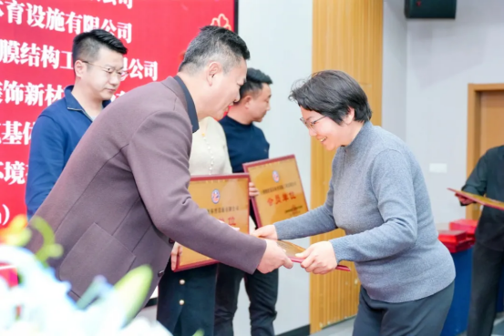 上海体育设施工程建设行业协会副会长石燕霞为新会员单位:上海展冀环境有限公司、广州格林斯柏体育设施有限公司、江苏标榜装饰新材料股份有限公司、上海金鸿玺体育设施有限公司、上海腾跃筑基体育设施工程有限公司、斯跑滋建筑材料贸易(上海)有限公司授牌。