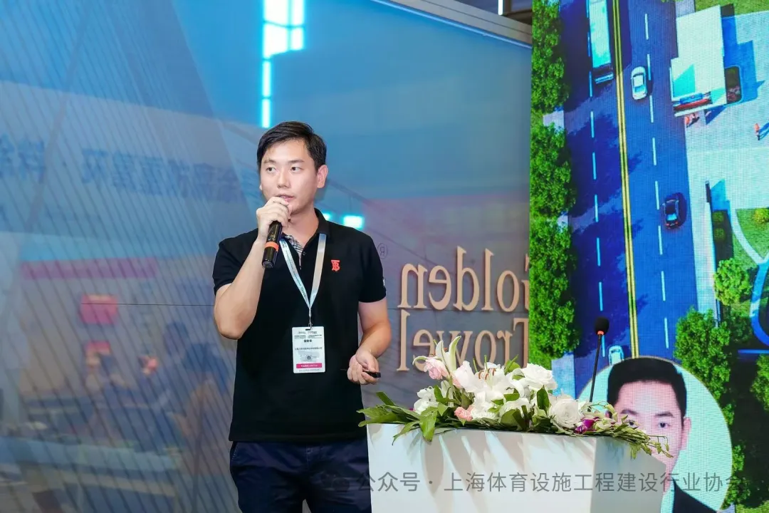 广州杰锐体育设施有限公司总经理詹金城,在会上提到了现浇类、预制类、半预制类场地跑道的内容。列举了半预制地材产品的优势,解析了半预制球场和半预制跑道。随后,他介绍了室内外综合性多功能球馆解决方案(篮球、排球、羽毛球、匹克球、网球)、ET面层技术、定制化球场设计等方面的内容。