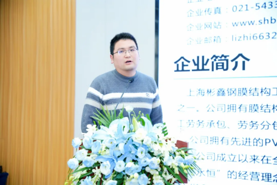 上海彬鑫钢膜结构工程有限公司经理雷洪发阐释了钢膜结构建筑设施的优势特性,介绍了公司的专业资质、技术实力、工程案例,涵盖体育场馆、文化景观、交通枢纽、商业设施等多个领域。他指出,公司注重技术研发,拥有自主知识产权的膜结构分析软件,能提供从设计到施工的一站式服务。